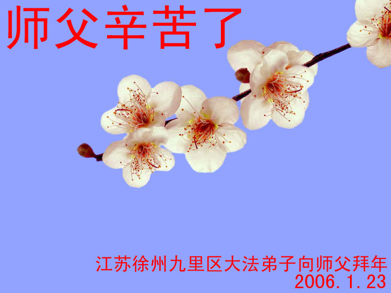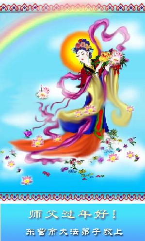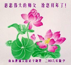 2006年1月27日 农历十二月二十八 山东省东营市大法弟子向慈悲伟大的师尊拜年:师父过年好!师父您辛苦了!