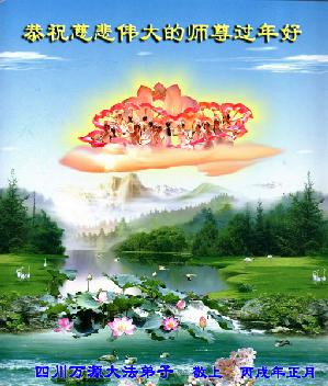 师父过年好: 我代表全家向师父贺年,我会更加精進的做好三件事,不辜负师尊对我们不精進弟子的慈悲苦度。 合十 河北省唐山市唐海弟子 小巧 四川省通讯行业的全体大法弟子给师尊拜年!