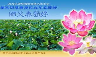 师父您好,弟子感谢您的慈悲苦度,弟子决不辜负“正法时期大法弟子”这一殊胜的称号。 辽宁阜新大法弟子敬祝 哈尔滨商业大学大法弟子恭祝师父过年快乐!