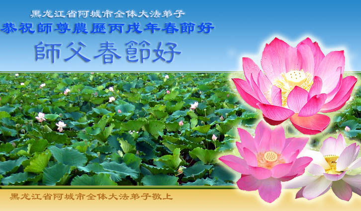 师尊您辛苦了,在农历新年即将来临之际,弟子全家诚挚的向伟大的师尊问候:恭祝师尊农历新年好。 我们全家是98年得法,在师尊的呵护下,受益匪浅。在新的一年里,要更好做好师尊要求的三件事,走好走正师尊安排的修炼道路,解体一切邪恶。请师尊放心,弟子永远听您的话,踏踏实实完成弟子肩负的史前洪愿。 吉林市大法弟子全家向师尊合十! 哈尔滨大法弟子祝伟大的师父新年快乐!
