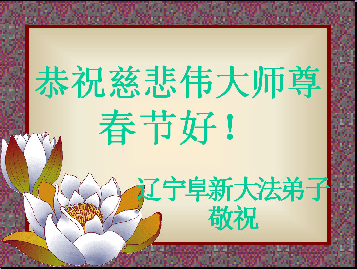 在新的一年我们紧跟师尊正法進程,做好三件事,请师尊放心! 2005年1月26日 辽宁阜新大法弟子敬祝伟大师尊新年好!
