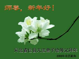 新年又来临,我代表认识的同修和家人,向师父拜年!在新的一年里我们一定要用行动做好大法弟子该做的三件事,清除一切邪恶,走正修炼路,紧跟正法進程。 2006/1/22 石家庄大法弟子敬祝师尊新年好!