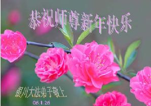 值此新年来临之际,弟子向慈悲的师尊致以最崇高的敬意,恭祝师尊新年快乐!弟子唯有走好走正师父安排的路,去证实大法,救度众生,修炼好自己,才不辜负师父的慈悲救度! 广州大法弟子 2006年元月22日 中国大陆退役军官大法弟子向慈悲伟大的师尊恭祝新年快乐!