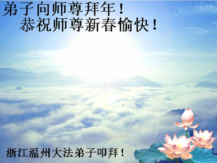农历新年愉快! 我们南召县全体大法弟子不忘师父的教诲,在新的一年里,努力做好师父要求的三件事,紧跟正法進程,全体配合,整体升华,整体提高。 浙江温州大法弟子向师尊拜年!恭祝师尊新春愉快!
