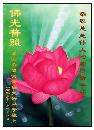 感谢师尊又一年的慈悲呵护。 并请师尊放心:无论在任何环境下,弟子都会坚定的走好正法路,做好三件事,不负恩师慈悲苦度。 北京大法弟子恭祝师尊新年快乐!