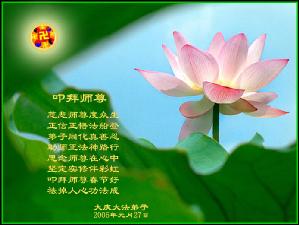 广东湛江市全体大法弟子向师尊问候,师父新年好! 合十 2006年1月27日 东营大法弟子给师父拜年!在新的一年里弟子会更加精進,请师父放心!