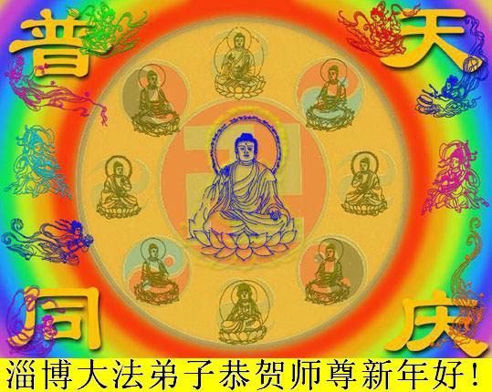 家乡大法弟子想念您!祝慈悲伟大的师尊新年好。 淄博市医疗系统的大法弟子向慈悲伟大的师尊拜年。