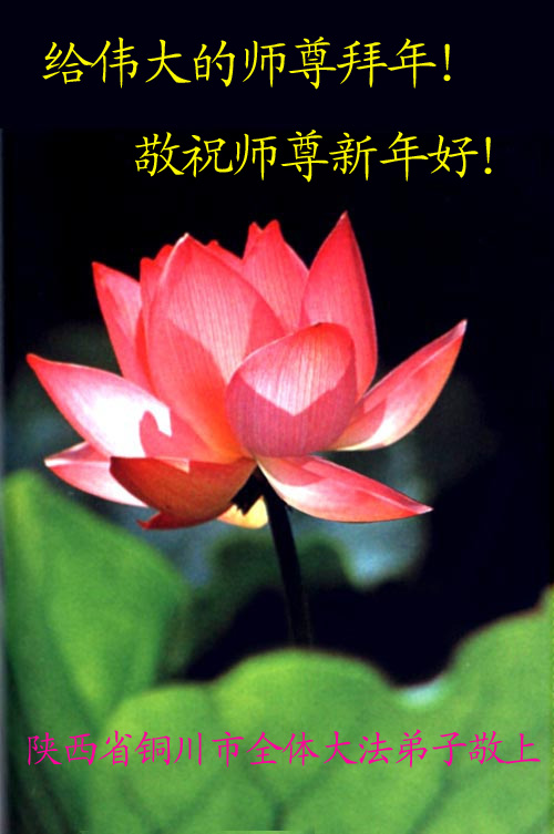 佛恩浩荡度众生 弟子得法進不停 助师人间佛法现 亿劫已过宙宇明 山东东营胜利油田全体大法弟子合十敬上 2006年1月27日 陕西省铜川市全体大法弟子给伟大的师尊拜年!