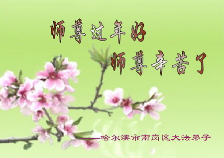 师尊您辛苦了!郴州大法弟子想念您,盼望与您早日相见! 郴州大法弟子敬上 2006年1月27日 哈尔滨市南岗区大法弟子祝师尊过年好!