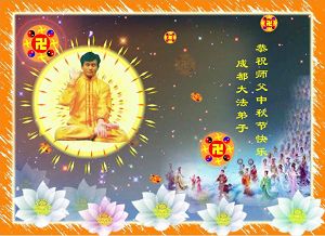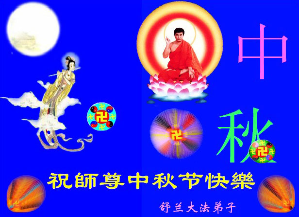 | 【明慧网二零零六年十月五日】 大陆大法弟子恭贺慈悲伟大的师父中秋节快乐! 贵州全体大法弟子恭祝师尊中秋节快乐! 湖南、深圳、宝鸡、桂林大法弟子恭祝师尊中秋节快乐! 舒兰市大法弟子祝无比伟大的师尊中秋节快乐! 成都大法弟子恭祝师尊中秋节快乐! 山东烟台全体大法弟子恭祝师尊中秋节快乐! 大陆大法弟子恭贺慈悲伟大的师父中秋节快乐!