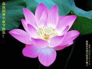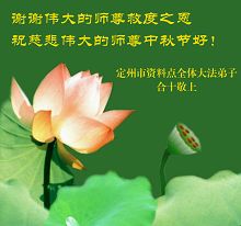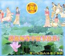 请师尊放心,我们会在正法的最后时刻,做好三件事,修好自己、救度更多众生、彻底否定解体邪恶,走好自己的修炼之路,不辜负师尊的慈悲苦度。 全体廊坊大法弟子叩拜师尊! 二零零六年十月二日 广州市番禺区大法弟子恭祝师尊中秋快乐!