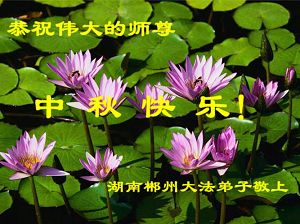 长沙大法弟子想念师父!请师父放心,长沙大法弟子一定会以法为师,紧跟正法進程,做好三件事,救度更多的世人。恭祝慈悲伟大的师尊中秋节快乐! 湖南益阳大法弟子祝师父中秋节快乐!