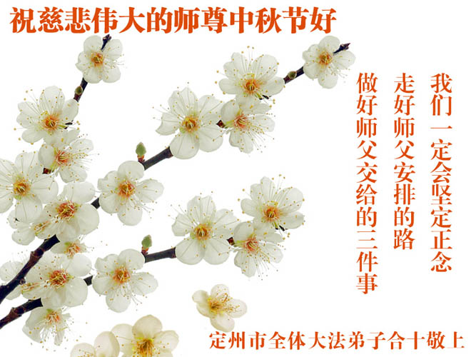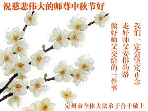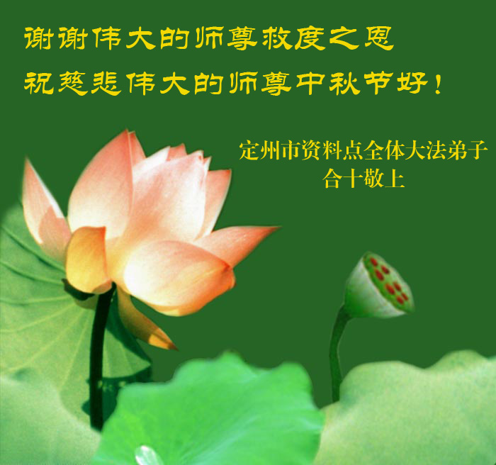 在此法正人间的历史时期,我们一定做好三件事,紧跟师父正法進程,助师世间行! 任丘大法弟子向师尊问候:尊敬的师尊祝您中秋节快乐!