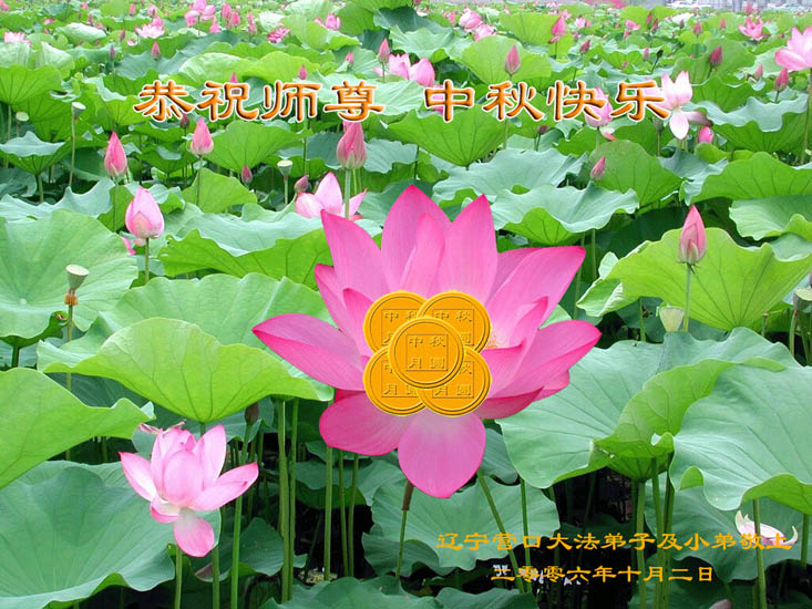 谢谢伟大的师尊救度之恩,祝慈悲伟大的师尊中秋节好! 定州市资料点全体大法弟子 合十敬上 二零零六年十月二日 辽宁营口大法弟子及小弟子恭祝师尊中秋节快乐!