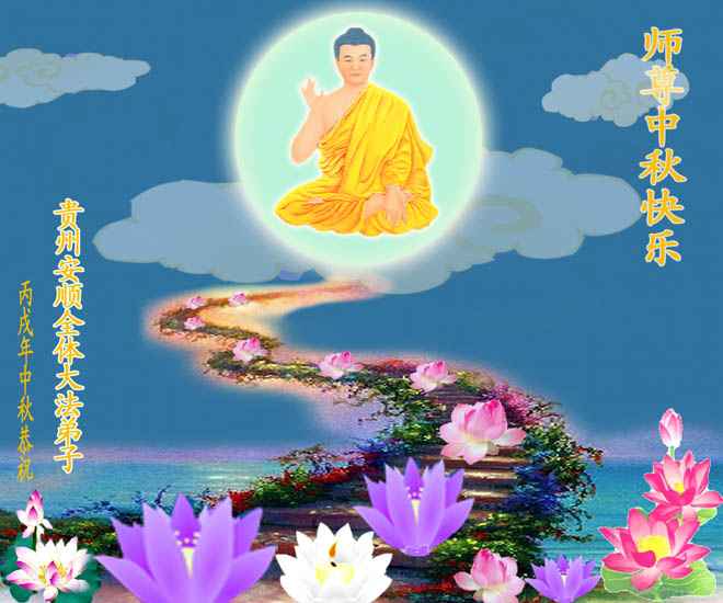 贵州省贵阳市大法弟子及白云区大法弟子想念师尊,感谢师尊的慈悲苦度,请师尊放心,一定做好三件事。祝恩师中秋节快乐! 辽宁鲅鱼圈地区全体大法弟子恭祝慈悲伟大的师尊中秋快乐