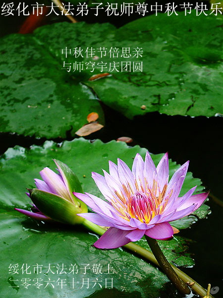 绥化市大法弟子敬上 二零零六年十月六日 德惠市全体大法弟子恭祝师尊中秋快乐