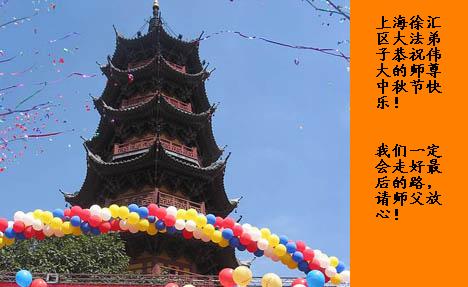 我们在各种环境中一定紧跟师父。做好当前的三件事,不辜负师父对我们的希望,望师父放心。 河北省衡水市故城县全体大法弟子 2006.10.2日 上海市闵行区和徐汇区的大法弟子恭祝慈悲伟大的师尊中秋节快乐!