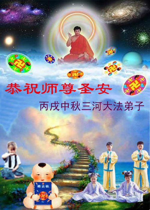 在此中秋佳节到来之际,我们黑龙江省依兰县全体大法弟子恭祝慈悲、伟大的师尊:中秋节快乐!师尊您辛苦了,弟子们想念您! 我们依兰县全体大法弟子一定会按照师父的要求,做好三件事,正念正行,走好以后的路。 黑龙江省依兰县全体大法弟子合十 二00六年九月三十日 龙口市全体大法弟子祝师父中秋节快乐!