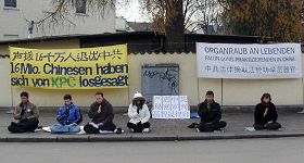 “太美了、真是太美了!”扶着自行车目不转睛观看的那位妇女,一边欣赏功法一边嘴里不断的感慨着。在她面前,那些正在安静打坐的法轮功学员身后,横幅和展板上黑白分明的写道“中共活体摘取法轮功学员器官”、“声援一千六百万人退出中共”和“严谴中共秘密审判高智晟律师”,这些与祥和的音乐、安然打坐的法轮功学员形成了一种强烈的对照。 那位女士边看边感慨,无法理解中共为什么要对这样的人群实行迫害。在场的法轮功学员向她解释,中共之所以会迫害法轮功,是因为法轮功信仰的真善忍精神的触动了中共的根本,中共邪恶的本性使它无法容纳这些以真善忍为追求目标的人们。活摘法轮功学员器官更是为了在肉体上消灭这些善良的信仰者的同时牟取暴利,是这个星球上从未有过的邪恶。明白了真相的那位女士希望能通过捐款的方式来帮助法轮功学员,在场的学员告诉她:“我们不收捐款,我们需要道义上的支持。”闻言她直点头:“你们已经拥有了我道义上的声援。” 中共对法轮功学员的迫害已经持续了七年多了,面对越来越多的国际社会谴责,中共不仅没有收敛,反而一方面进行掩饰和销毁证据,欺骗国际社会,另一方面加紧迫害,同时又对敢于为法轮功仗义执言的人士如高智晟律师进行迫害,中共先是关押高律师、无休止的骚扰他的家属,然后又对高智晟律师进行秘密审判,同时打伤他的家人包括他十二岁的女儿。 中共这些做法,无异于加速自己的灭亡。随着《·九·评*共产党》的广泛传播,更多的民众认清了中共的真实面貌,目前已有一千六百五十多万民众摆脱了中共,每天更是有三至四万人在大.纪.元;网站上声明退出中共的各种组织,天灭中共不是神话,它就发生在我们眼前。