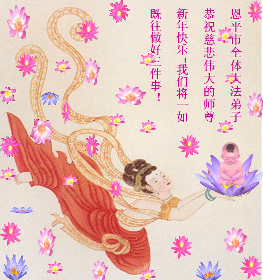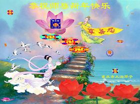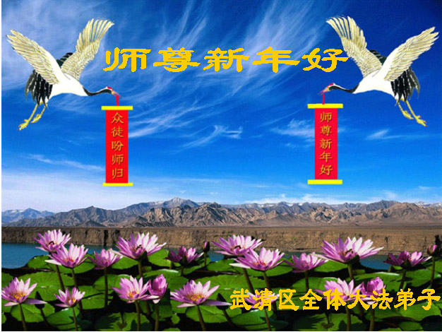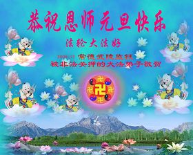 大陆的大法弟子万分想念大慈大悲的师父,我们无法表达我们感激之情,值此新年即将到来之际,我们衷心祝愿无限慈悲的师父新年快乐! 沈阳康平哈喇沁屯大法弟子拜上 四川大邑县全体大法弟子祝师父元旦节快乐