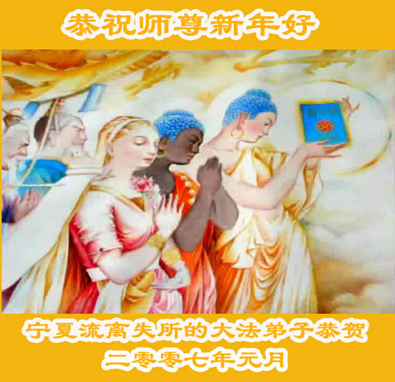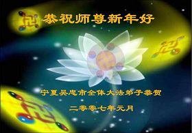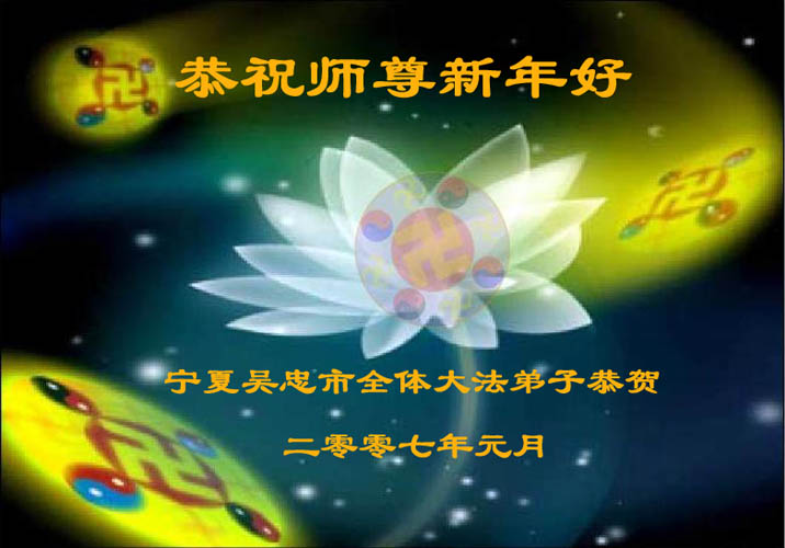 慈悲伟大的师尊: 2007年元旦佳节即将来临,在此特向师尊致以亲切的问候和深深的敬意! 目前,正法已進入最后的阶段,旧势力因看到覆灭在即而愈加疯狂,大法弟子也面临“走好自己的路,完成好三件事”的最后考验,在这重要历史的关键时刻,我们一定铭记师尊关于“法是基础,是大法弟子的根本,是一切的保障,是从人走向神的通途”的教诲,真正的集中念头学,不走形式,学法入心,实学实修,整体提高。并在不断提高和加强正念的同时,彻底解体本地区所有黑窝内的一切邪恶生命与因素,彻底结束本地区迫害大法弟子的邪恶形势,更有效地救度众生,紧跟师尊的正法進程,迎接庄严、不平凡的2007年。 合十 武汉市新园全体大法弟子 2007,12,4, 宁夏回族自治区大法弟子向伟大的师父问好