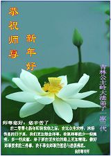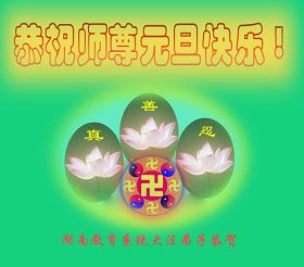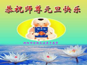 新的一年又来到了,在深圳打工的大法弟子祝师尊新年快乐!我们一定谨遵师父的教诲。做好三件事,全心救度众生。随师回家。同时向明慧同修们道一声:你们辛苦了!谢谢你们的努力。 沈阳康平哈喇沁屯大法弟子恭祝师父新年快乐