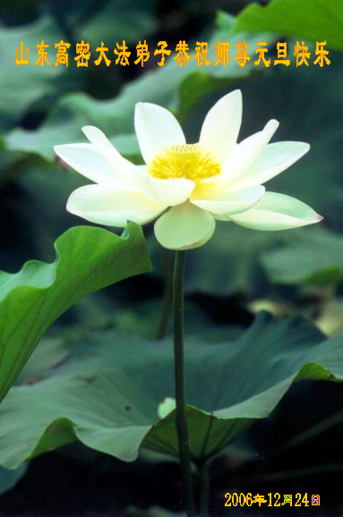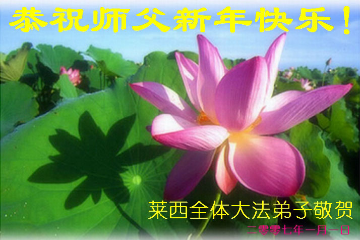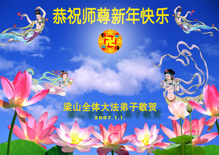 祝师尊元旦快乐,请师父放心,弟子们一定不会辜负您的期望,努力做好您要求的三件事,完成好史前大愿。请师父多休息,不要劳累。 招远市全体大法弟子合十敬上 二零零六年十二月二十四日 辽宁黑山大法弟子祝师父新年快乐