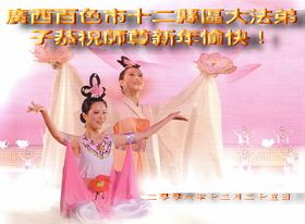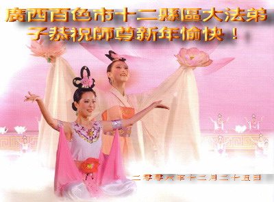 在新的一年里,我们会更加精進,做好三件事。 二零零六年十二月二十五日 广西百色市十二县区大法弟子恭祝师父新年愉快