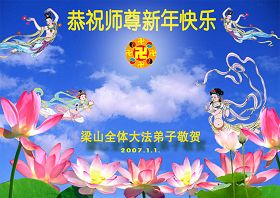 尊敬的师尊您好: 我们山东蓬莱大法弟子恭祝师尊新年快乐。在新的一年里,我们蓬莱大法弟子一定更加精進,不辜负师尊的慈悲苦度。荣幸成为正法时期的蓬莱大法弟子们想念您。 山东蓬莱大法弟子 二零零六年十二月二十六日 安徽阜阳全集大法弟子恭祝师尊新年快乐!