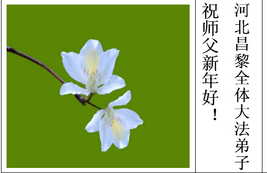 弟子们无法用语言来表达对师尊的感激。每想到师尊为弟子承受的一切总是泪流满面。天津东丽大法弟子祝师尊新年快乐,弟子们一定会做好,不会再让师尊操那么多心。 河北昌黎全体大法弟子向师父新年问好!