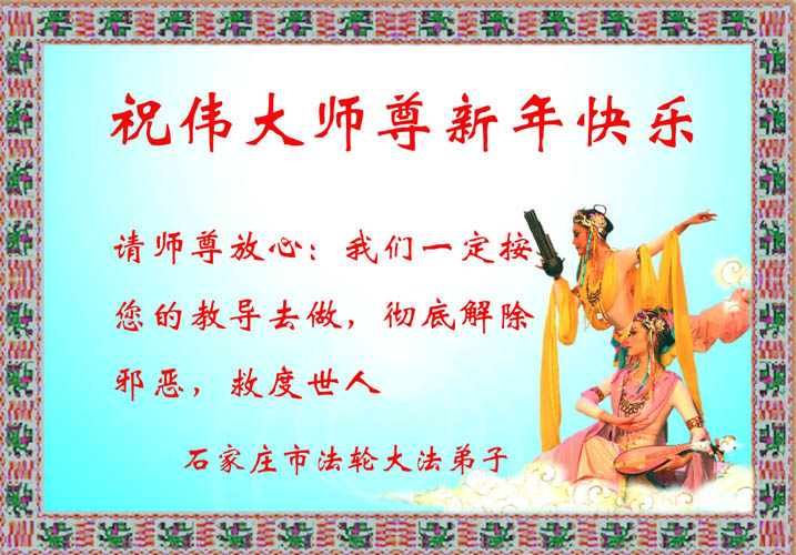 请师尊放心,在新的一年里,我们一定努力做好三件事,救度更多的众生,早日跟师尊回家。 河北科大全体大法弟子 石家庄全体大法弟子祝伟大的师尊新年好!