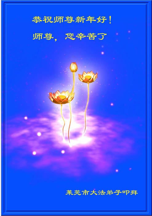 我们走在修炼的路上,体会到了师父的巨大伟大的付出,我们知道这种体会也是其中小小的一部份,在这个新年日,我们祝师父新年快乐! 山东烟台学员 广州大法弟子祝师父新年快乐!