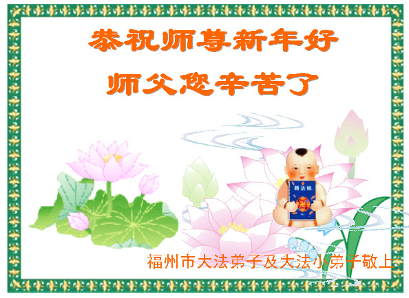 祝愿全世界大法弟子更加精進, 迎接普天同庆的到来! 唐山大法弟子想念师父 福州市大法弟子及大法小弟子恭祝慈悲伟大的师父新年好!