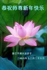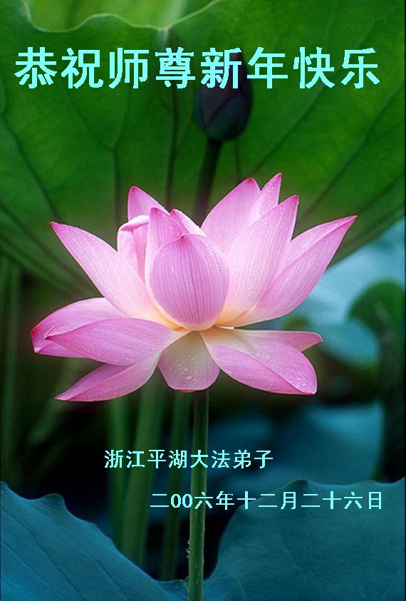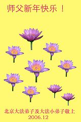 师父好!弟子全家向师父问好! 祝师父元旦快乐! 2006年12月27日 朝阳地区建平县全体大法弟子共同祝愿慈悲的师父新年快乐