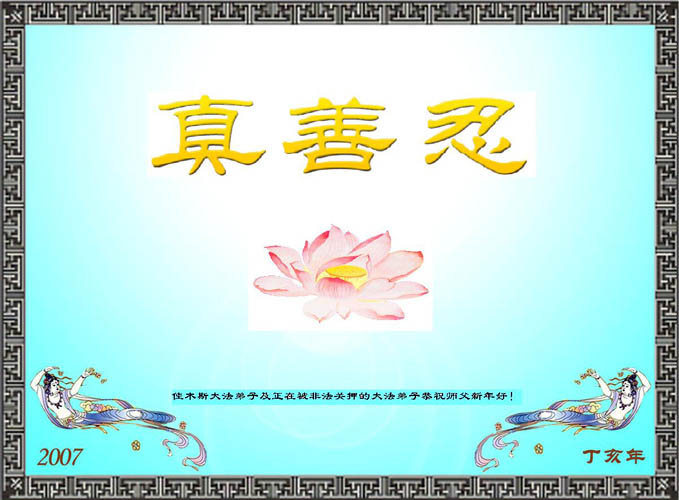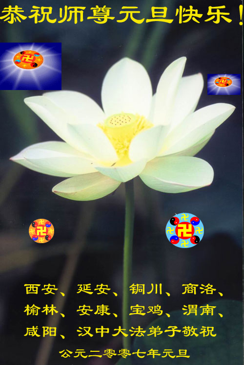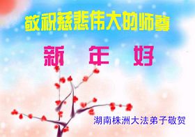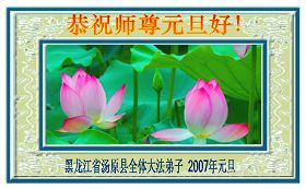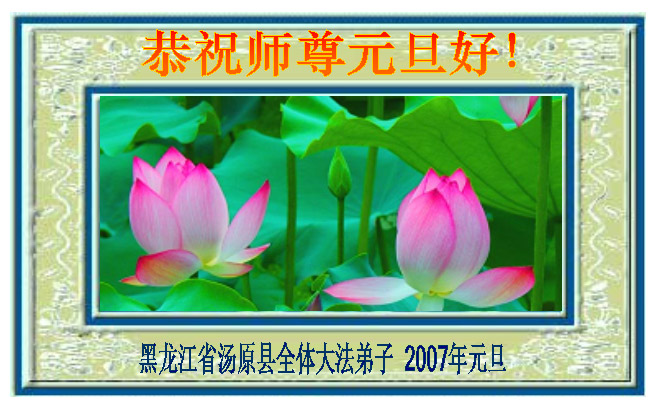 在元旦来临之际,湖南株洲全体大法弟子恭祝慈悲、伟大的师尊新年快乐!弟子一定努力做好“三件事”,不断精進,完成史前大愿。 黑龙江省汤原县全体大法弟子恭祝慈悲伟大的师尊2007元旦好!