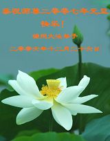 我们一定紧跟师父正法進程,努力做好三件事,救度世人,完成大法弟子的神圣使命。 学法精進去执著, 正念解体烂鬼魔。 广传《·九·评*》救众生, 佛光普照新宇明。 哈尔滨大法弟子 二零零六年十二月二十五日 哈尔滨大法小弟子敬祝师尊新年好!