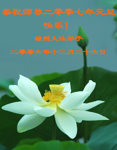 在新的一年里,我们会更加不负师尊的慈悲苦度,铭记正法时期大法弟子的责任与使命,学好法,不断的归正人心,修正自己的行为,更加成熟、平稳,清晰理智的做好三件事,清除最后的邪恶,救度更多的众生,走好最后的回归之路。 锦州大法弟子恭祝师尊二零零七年元旦快乐!