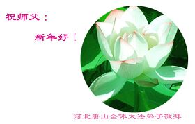 师父: 弟子们想念您!我们知道,您时刻在我们身边慈悲的呵护着,但是,还是很想见一见您。您为弟子们操碎了心,弟子们无以为报。我们全县的大法弟子们,一定形成一个圆容不破的整体,整体提高,整体升华,跟上正法的進程,不辜负师父的慈悲苦度,早日和师父相聚。 全县大法弟子叩拜 2006年12月26日 石家庄大法弟子母女祝师尊元旦节快乐!