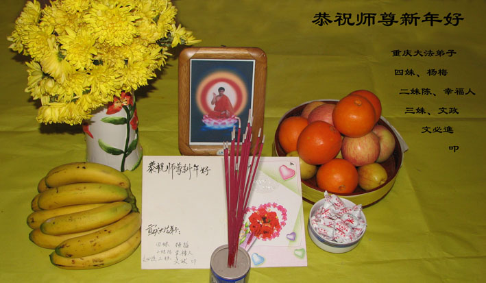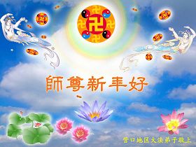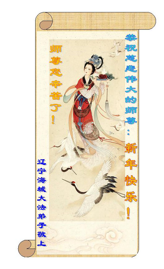 辽宁海城一大法弟子谨代表身在异地的两个女儿向伟大的师尊问好!恭祝师尊新年快乐!