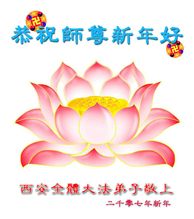 师尊正法十余载,历尽艰辛,为众生几乎耗尽一切! 弟子们无以回报,感念此无以言表!唯有再精進起来,溶于法中,不负师恩,不负师尊选择! 全体西安大法弟子敬上 2006年岁末 辽阳大法弟子恭祝师尊新年好!