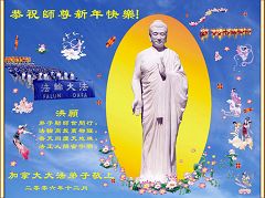 在二零零七年新年来临之际,台湾全体大法弟子向慈悲伟大的师尊拜年,并致以最崇高的敬意! 敬爱的师父,您辛苦了!您为救度众生历尽艰辛,用巨大的承受与付出,使大穹逐步迈向新纪元。全体大法弟子一定恪遵您的谆谆教导,踏踏实实的做好学法、发正念、讲清真相三件事,践履我们助师正法的誓约。弟子们会配合协调好,形成坚不可摧的整体,珍惜修炼的每一天,走正、走好每一步,不辜负师父的殷切期望,以完成正法时期赋予大法弟子的历史使命。 请师父放心,弟子们一定会更加勇猛精進,以回报师尊和大法救度的浩荡佛恩于万一! 台湾全体大法弟子敬拜 二零零六年十二月二十七日 泰国全体大法弟子敬祝师父新年快乐!