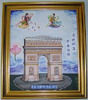 莲花与凯旋门画象,是代表居留法国的大法弟子真诚的向慈悲伟大的师尊祝贺新年好。也代表大法的洪传,将给人们带来幸福,美好的象征。这二首诗歌之中,第一首诗是配这幅油画而写的。 恭祝师尊新年好 一 鲜花馨飘仙姿傲 撒播福音迎春到 启悟众生开世门 真理横幅空中耀 师恩浩荡法光照 净莲呈祥壮景妙 海外弟子齐声颂 恭祝师尊新年好 二 净莲新宇呈瑞祥 傲梅迎春散清香 诗词神韵四海吟 恭祝恩师乐轻松 法国大法弟子叩敬 二零零六年十二月十七日 台湾全体大法弟子恭祝慈悲伟大的师尊新年好