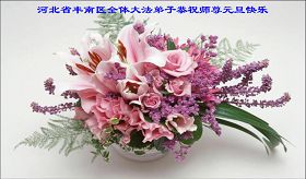 旧岁将逝,新年来临,我们全县大法弟子祝师尊新年快乐! 我们一定按照师尊的要求做好三件事,救度更多的有缘之人! 浙江开化大法弟子 2006年12月28日 唐山大法弟子恭祝师尊新年快乐!