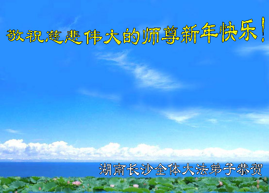 值此新年到来之际,我们向慈悲伟大的师尊问一声:新年好! 同时恭祝师父新年快乐! 大陆沈阳地区哈喇沁屯大法弟子 黑龙江全体大法弟子恭祝慈悲伟大的师尊新年好!