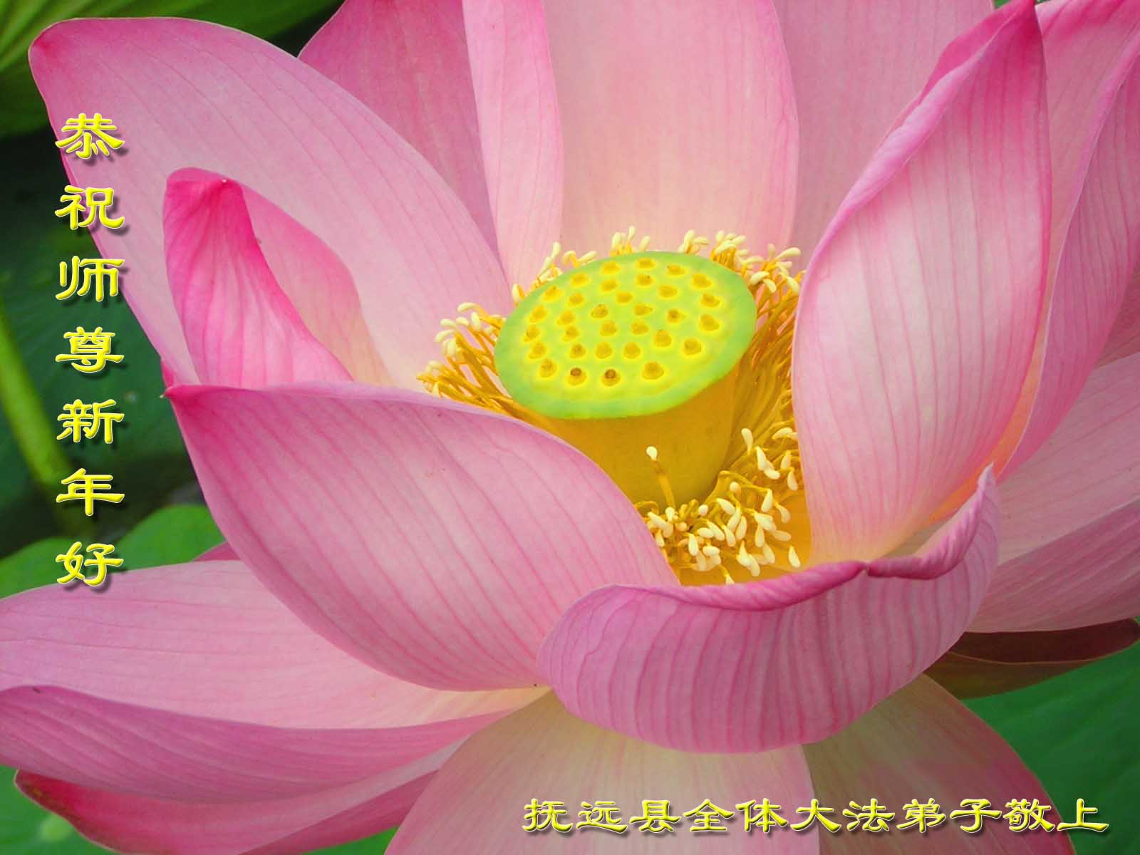 恩师慈悲正大穹 法徒助师世间行 救度众生责任重 危难之中正念行 精進不停金刚志 莲开花香满天庭 一定不负重托,做好三件事,请师尊放心。 黑龙江省抚远县全体大法弟子恭祝师尊新年好!