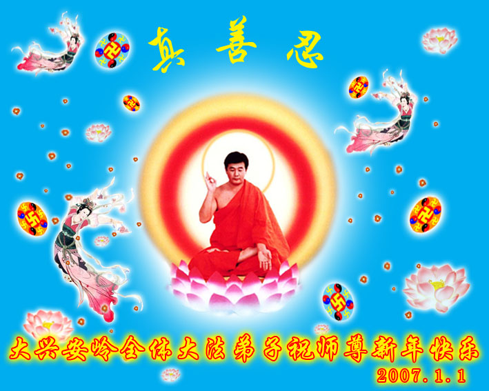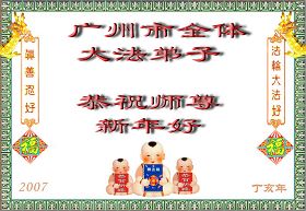 一元伊始 万象更新 众生得救 万恶尽淘 梅花数点 天地皆春 莲开天庭 佛光普照 普宁全体大法弟子二零零七年元旦向师父问好!恭祝师父新年快乐! 广东揭西县全体大法弟子恭祝师尊新年快乐!