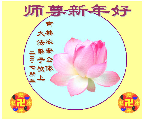 在这正法的最后的阶段,我们农安全体大法弟子谨遵师尊教诲,勇猛精進做好三件事。完成自己的史前大愿,救度无量众生,圆满随师还。 二〇〇六年十二月三十日 广州市全体大法弟子恭祝师尊新年好!