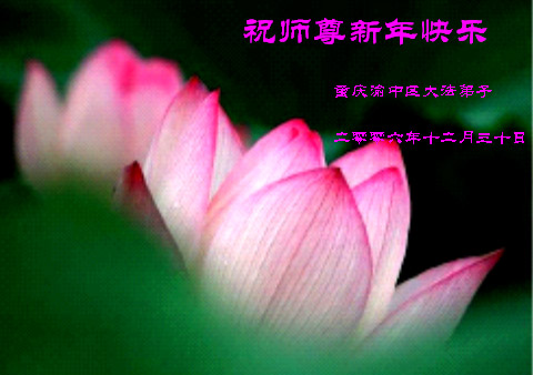 在新的一年里,我们一定以法为师,比学比修向内找,修好自己,走正我们的修炼之路。相互配合、整体提高、整体升华,做好三件事充份展现大法弟子的威德。一定不辜负师父的慈悲救度,完成我们的史前大愿。 本溪全体大法弟子 二零零六年十二月三十日 重庆渝中区大法弟子祝慈悲伟大的师父新年快乐