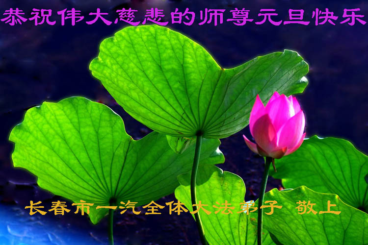 师父请放心,我们一定不辜负师尊的慈悲苦度,助师正法,救度世人。走好我们的修炼之路,愿师尊在新的一年能多一分欣慰。 长春市一汽全体大法弟子恭祝师尊元旦快乐!