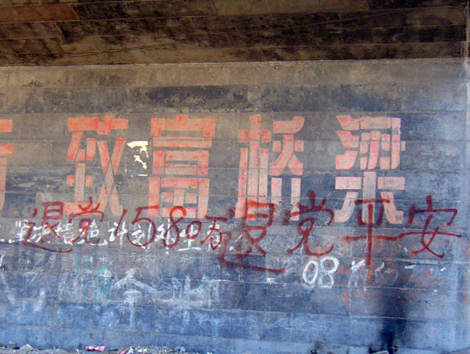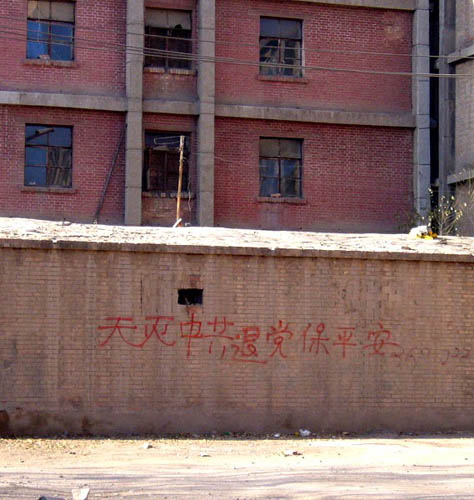 这是西北某市住宅区、公路边和桥梁处看到的退!党!标语和传单,有的被擦去,不久又被用更鲜艳的颜色写上。有的保持了很长时间。 山东德州平原县大法弟子王秀萍被绑架